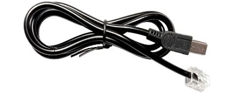 Jeden kabel zapewniający połączenie interfejsem RS (wtyki: 1 x RJ12, 1 x mini USB) kas Farex PRO 300 i PRO 600 z terminalem płatniczym Desk.