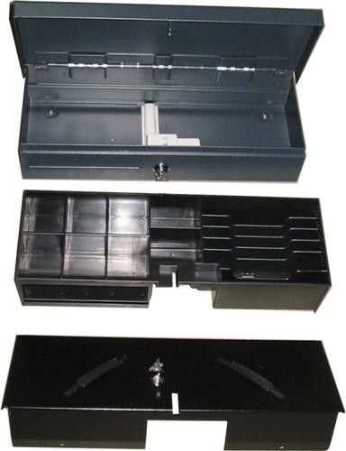 Szuflada otwierana „do góry”. Posiada kluczyk otwierający szufladę lub blokujący ją przed otwarciem „z urządzenia fiskalnego”. Wewnątrz szuflady kaseta na pieniądze z drugim kluczykiem. Kaseta wyjmowana z obudowy. Po otwarciu kluczykiem i zdjęciu pokrywy kaseta posiada 8 pojemników na bilon oraz 6 przegród na banknoty.