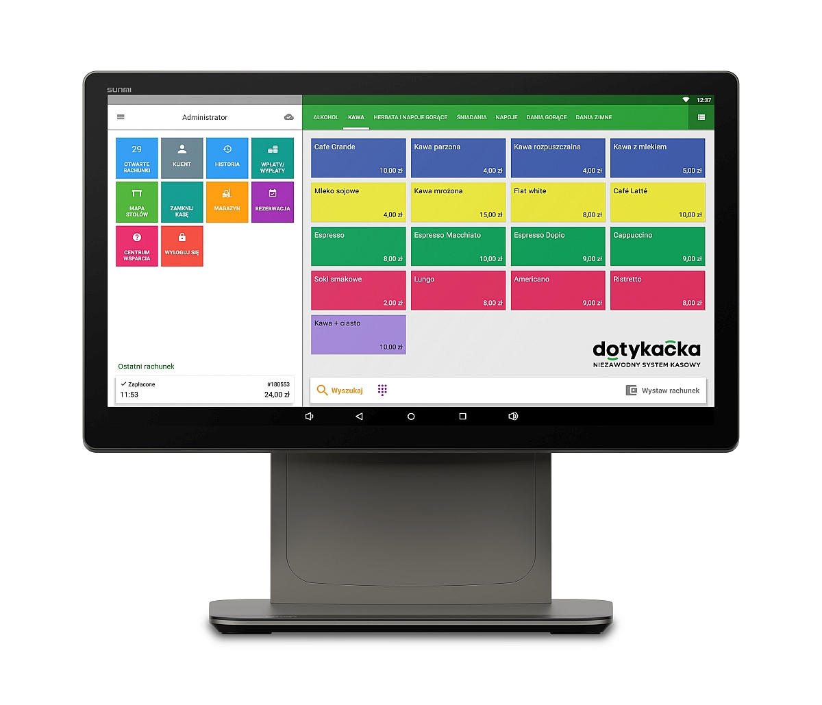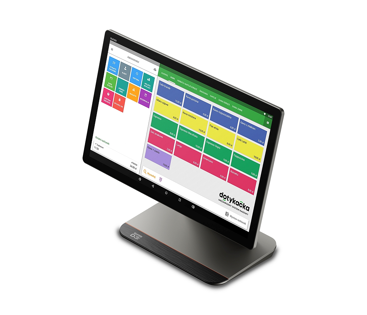 Ważne! Sprzęt jest dedykowany do obsługi systemu kasowego Dotykacka (brak możliwość instalowania aplikacji zewnętrznych).