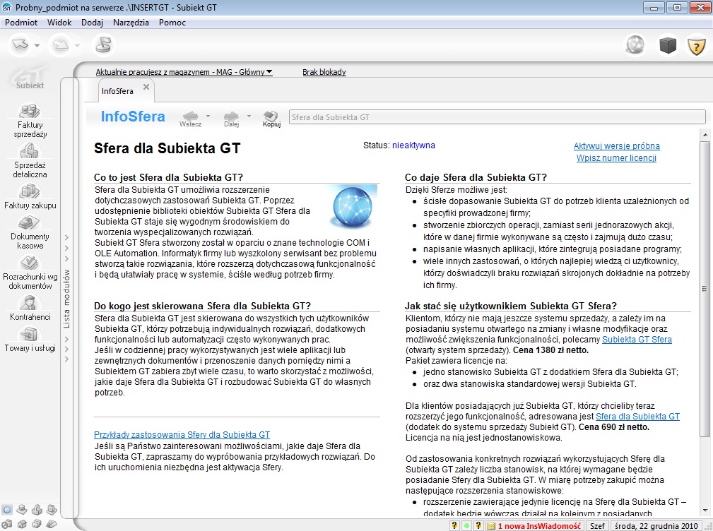 Sfera dla Subiekta GT (licencja elektroniczna)