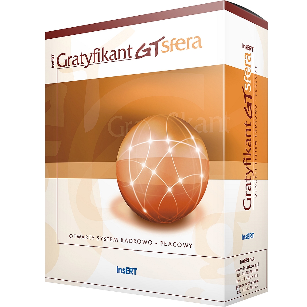 Gratyfikant GT Sfera jest nowoczesnym systemem kadrowo-płacowym, który oprócz standardowej funkcjonalności został wyposażony w - mechanizm umożliwiający rozbudowę systemu. Program powstał z myślą o użytkownikach, którym zależy na dodatkowych funkcjach, np. pobieraniu danych z systemów RCP czy definiowaniu własnych składników płacowych.