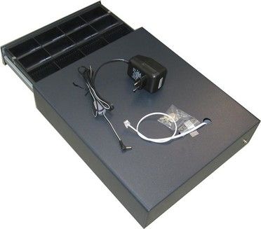 Szuflada "aktywna" podłączana do złącza RS232 kasy / drukarki i sterowana sygnałem "logicznym" , zasilana zasilaczem.